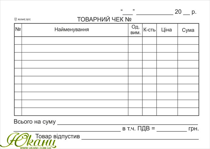 Товарний чек А6, горизонтальний, самокоп., 1блок-100арк.
