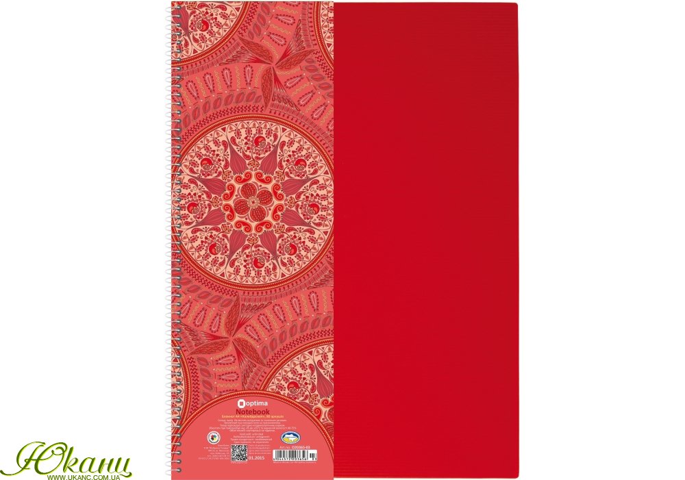 Зошит А4, "Калейдоскоп" 80 арк.., клітинка, на спіралі, пластикова обкладинка червона